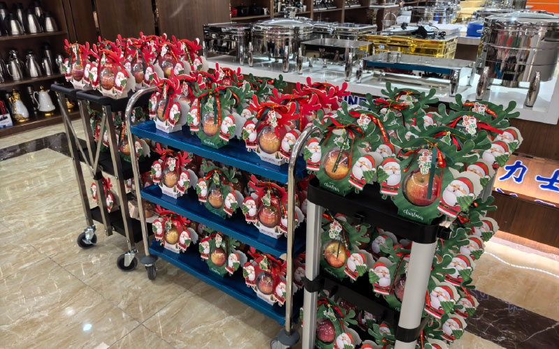 Заспівав пісню «Щасливого Різдва бажаємо, ми бажаємо вам щасливого Різдва…», упаковане чудове велике червоне яблуко разом, що означає миру, а потім наш Дід Мороз прислав нам по два мирних яблука на штат с подвійне щастя, вау, так мило, як велика родина.